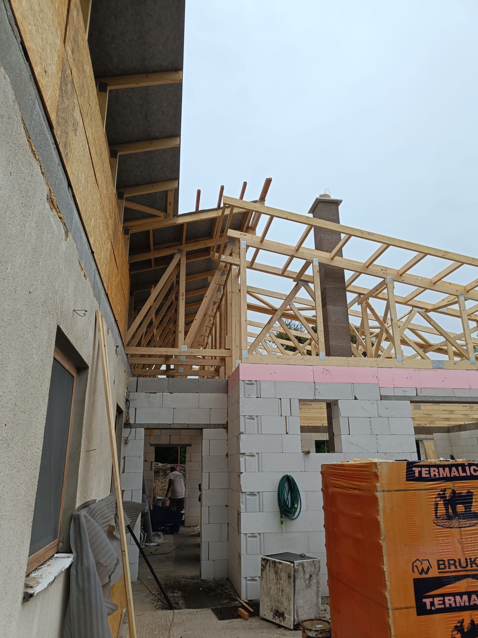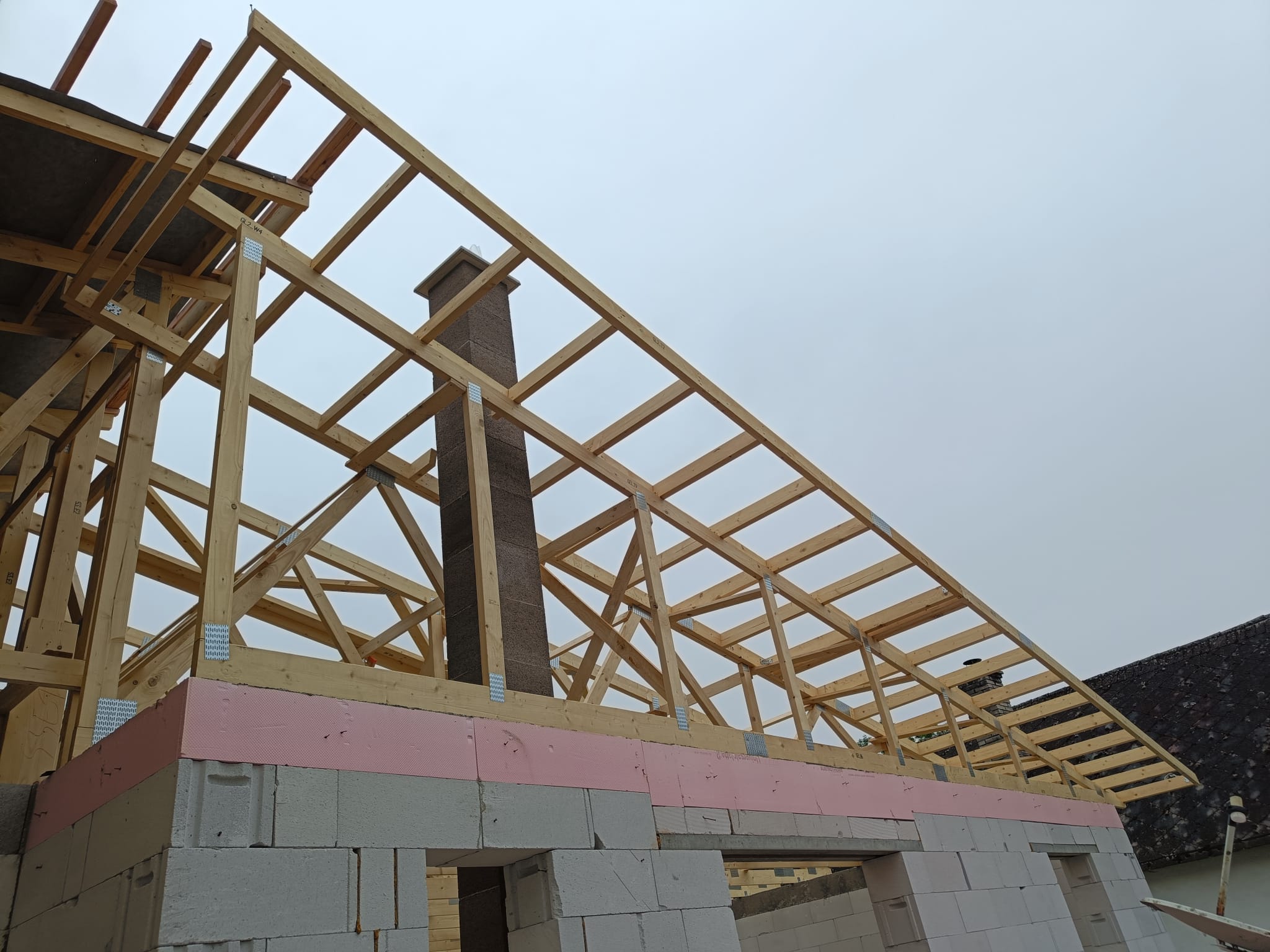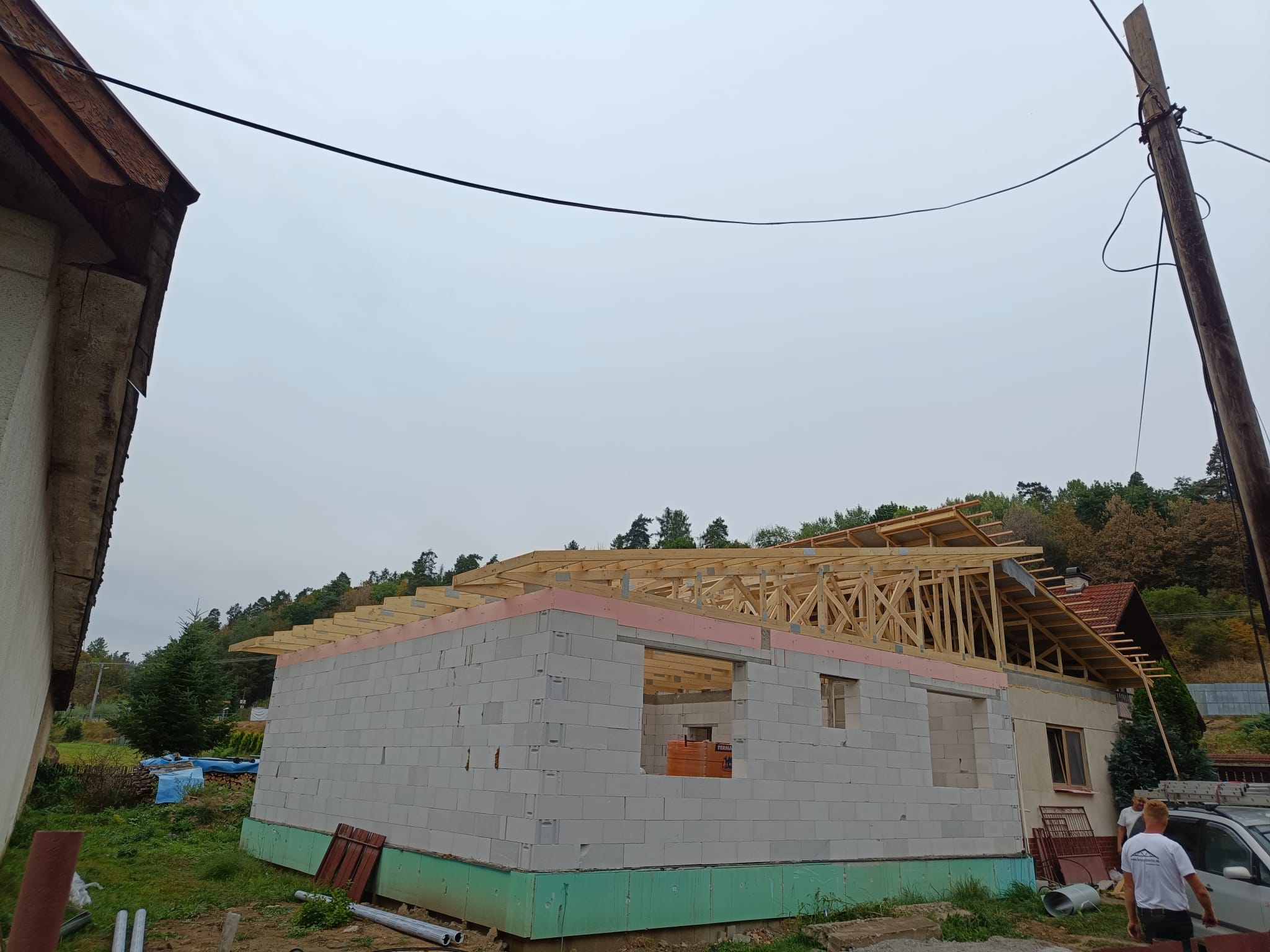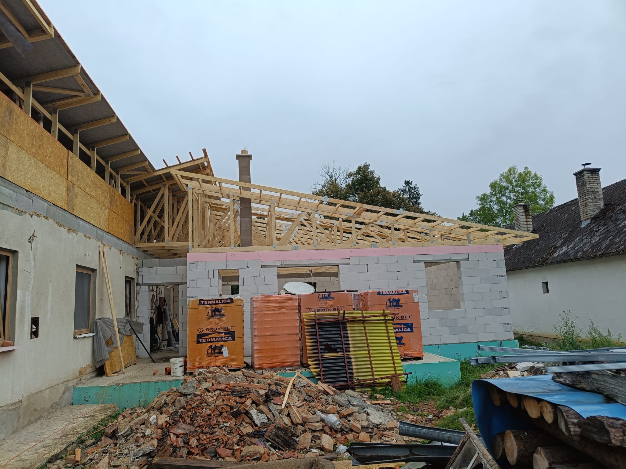 V rámci tohto projektu sme realizovali kompletnú výmenu strechy na starom dome a inštaláciu novej strechy na prístavbe, pričom sme použili väzníkový krov. Cieľom bolo plynulé spojenie starého domu s novou prístavbou, čo sa podarilo dosiahnuť prostredníctvom precíznej montáže a kvalitných materiálov. Tento moderný systém krovu poskytuje vysokú pevnosť a odolnosť, pričom zohľadňuje všetky požiadavky na energetickú efektívnosť a dlhú životnosť.